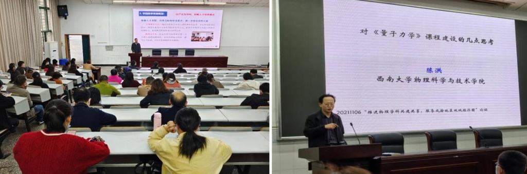 接下来,a片无码 陈洪教授以《量子力学》课程为例开展了第二个环节:说课程建设。陈洪教授提到,十九届五中全会以来,中央提出了的“三新一高”、“三基建一水平”,强调课程是人才培养的核心要素,课程建设的基本要求是“两性一度”,学生能力培养与课程目标设计是教师主导下的教与学的统一。教学中,不仅要将最新研究成果融入教学,还要融入课程思政元素,深度挖掘提炼专业知识体系中所蕴含的思想价值和精神内涵,科学合理拓展专业课程的广度、深度和温度,从课程所涉专业、行业、国家、国际、文化、历史等角度出发,增加课程的知识性、人文性,提升引领性、时代性和开放性。陈洪教授提倡教学中应将问题导向式互动教学和现代信息技术的应用相结合,可以采用“三助式”教学法,将学生真正放在教育的主体地位,课堂真正成为了学生自主学习、合作学习和探究学习的场所。