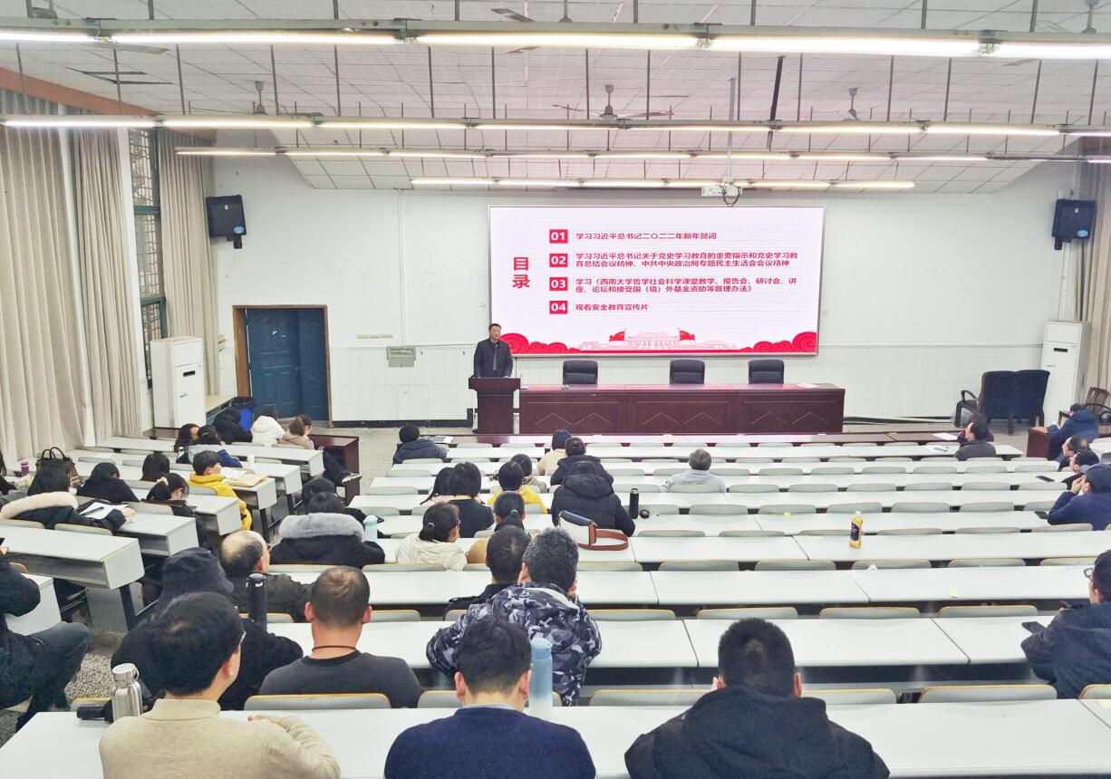 根据学校党委统一部署,1月7日下午,a片无码 在大阶梯教室举行2022年第一次教职工政治理论学习会。学习会由a片无码 党委书记李余廷主持,a片无码 全体教职工参加了此次学习。