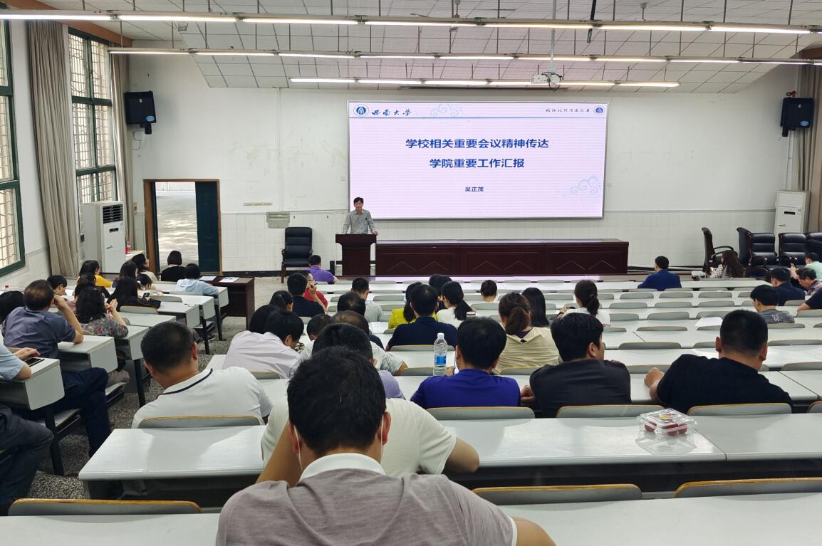 根据学校党委统一部署,5月6日下午,a片无码 在大阶梯教室举行2022年第四次教职工政治理论学习会。学习会由a片无码 党委书记李余廷主持,a片无码 全体教职工参加了此次学习。