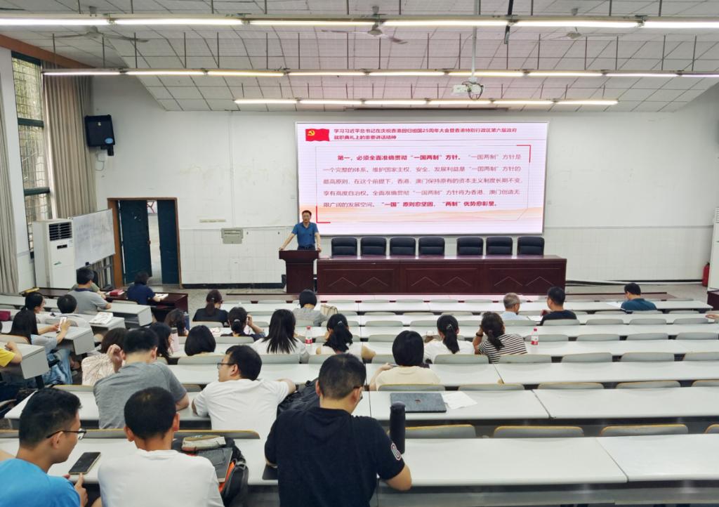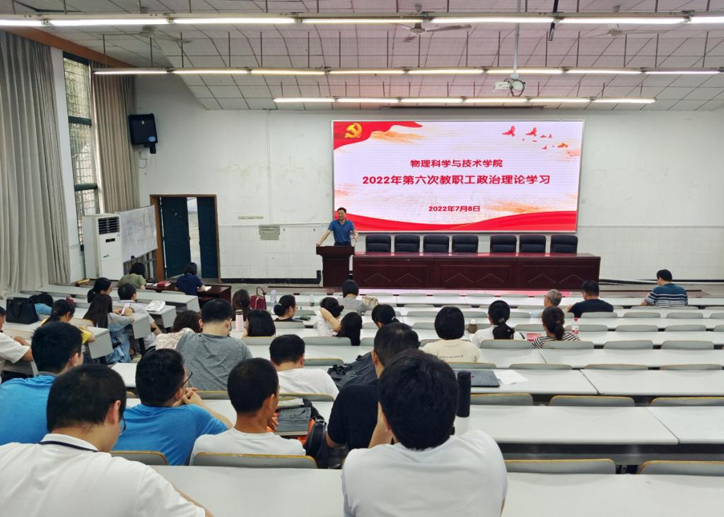 7月8日下午,a片无码 在大阶梯教室举行2022年第六次教职工政治理论学习会。学习会由a片无码 党委书记李余廷主持,a片无码 全体教职工参加了此次学习。
