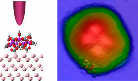 发明了一套适用于溶液分子的柔性沉积方法,把含结晶水的单分子磁体Mn12完整地移植到半金属表面,在实空间观测了Mn12分子的电子态密度分布。该研究结果为实现单分子磁体的信息存储和量子计算提供了实验基础。