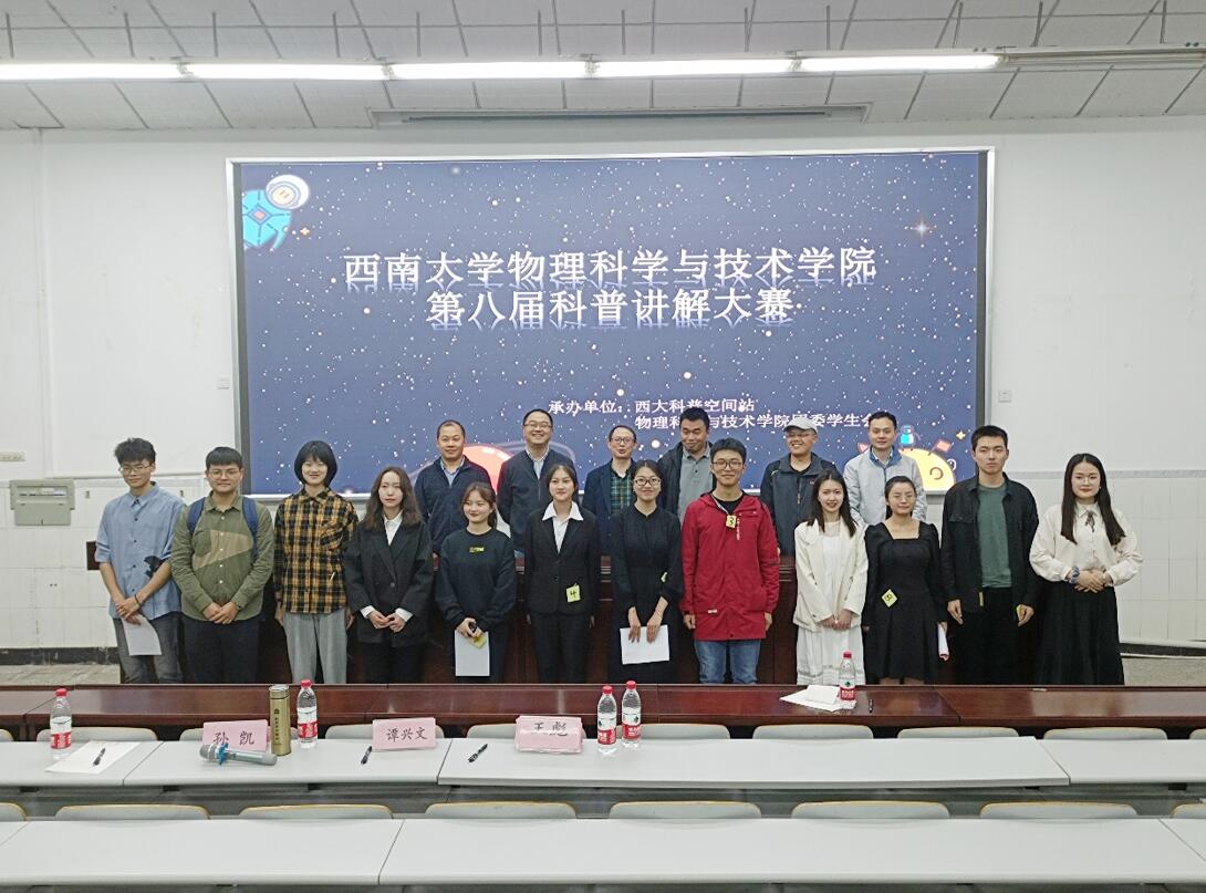 为培养大学生科学精神,提高大学生科普讲解能力,同时选拔重庆市科普讲解大赛选手,4月5日,a片无码 第八届科普讲解大赛决赛在物理大楼大阶梯教室顺利举行。a片无码 邓涛副院长、谭兴文、贾伟尧、王彪、孙凯、张巧明等老师担任评委,12名参赛选手及2017级、2019级、2020级的部分同学出席了本次活动。