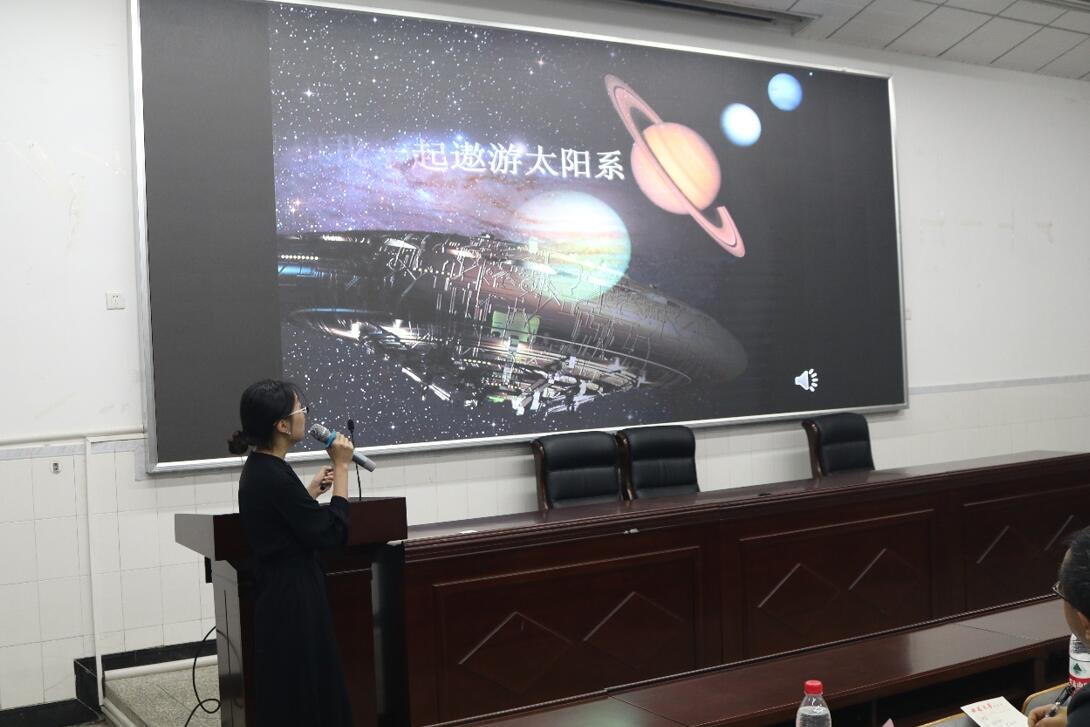 决赛。决赛当天,选手们先后就“天问一号”、“一起遨游太阳系”、“中国古代天文学成就”等主题进行了精彩的讲解。随后,各位评委老师对选手们的表现情况一一做了点评,提出了具有针对性、建设性的建议。经过紧张激烈的角逐,本次比赛共决出一等奖两名,二等奖三名,三等奖四名,优胜奖三名。其中,陈星宇、张渝同学获得一等奖;李卓航、刘梦露、游佳雪获得二等奖;杨博皓、曹雅诗、毛欣悦、欧阳圆圆获得三等奖;曹月瀚、李虹霖、任东获得优胜奖。