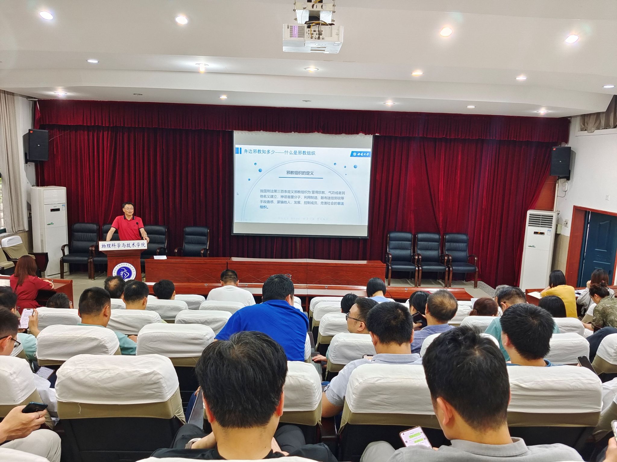 最后,李余廷书记对全体教职工进行了反邪教警示教育。李书记从身边邪教知多少、邪教问题无小事和旗帜鲜明反邪教三个方面,运用身边发生的案例,系统性提升全体教职工对邪教的鉴别能力,做到对邪教歪理邪说不听、不看、不信、不传,并鼓励全体教职工勇当反对邪教、抵制邪教的实践者、先行者和宣传员。