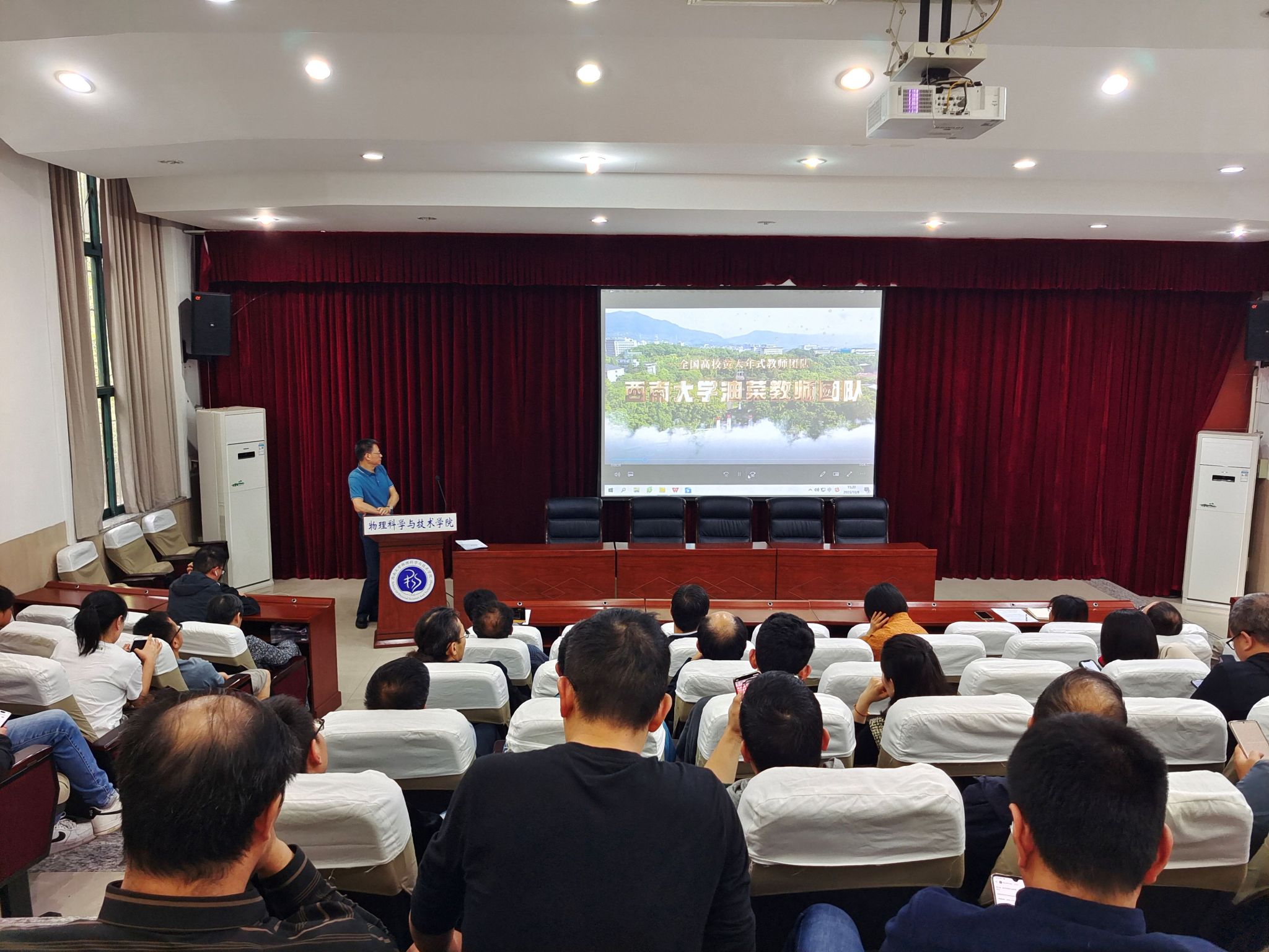 10月8日下午,a片无码 在大阶梯教室举行2023年第六次教职工政治理论学习会,专题学习习近平总书记关于意识形态工作的重要论述、习近平总书记教师节重要指示精神和集中观看“西大教师故事”短视频等内容。学习会由a片无码 党委书记李余廷主持,全体教职工参加了此次学习。