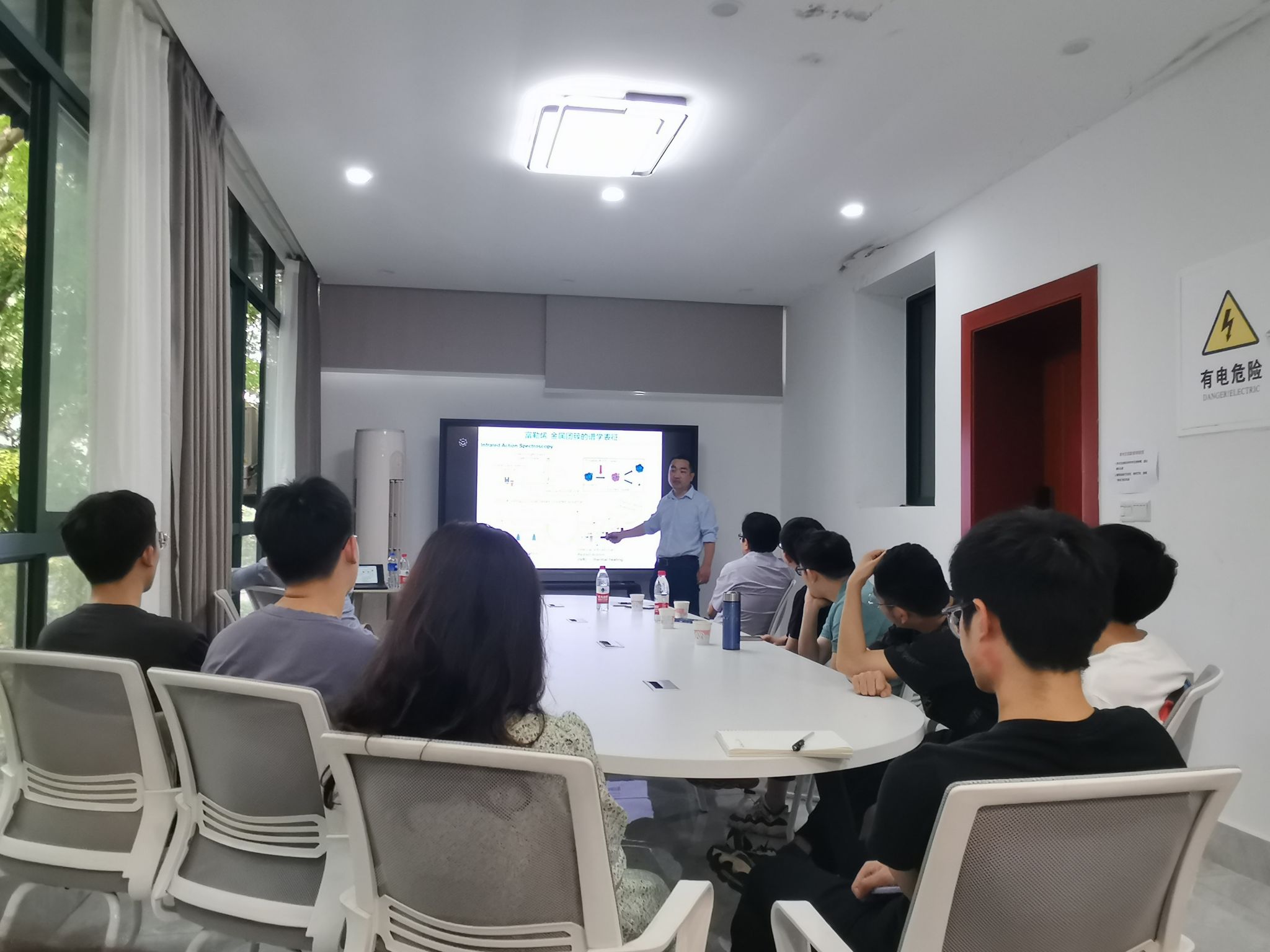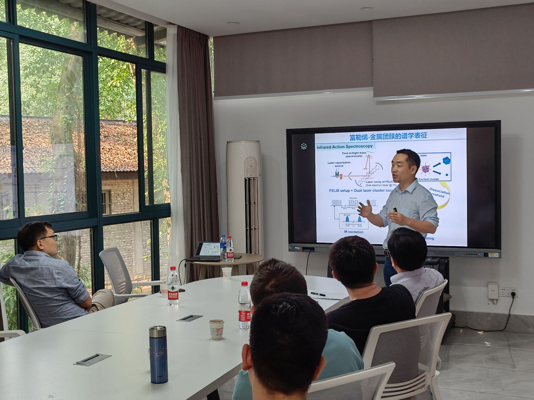 侯高垒教授主要分享了其团队近年来通过发展特色团簇束源和质谱-光谱联用实验技术与装置在富勒烯-金属团簇光谱精密测量方面取得的进展,并对于研究以富勒烯-金属团簇作为碳基负载型金属催化剂的模型探索相关催化机制时发现的显著载体效应(几何效应和电子效应)进行了细致的讲解,引发了同学们的深刻思考。