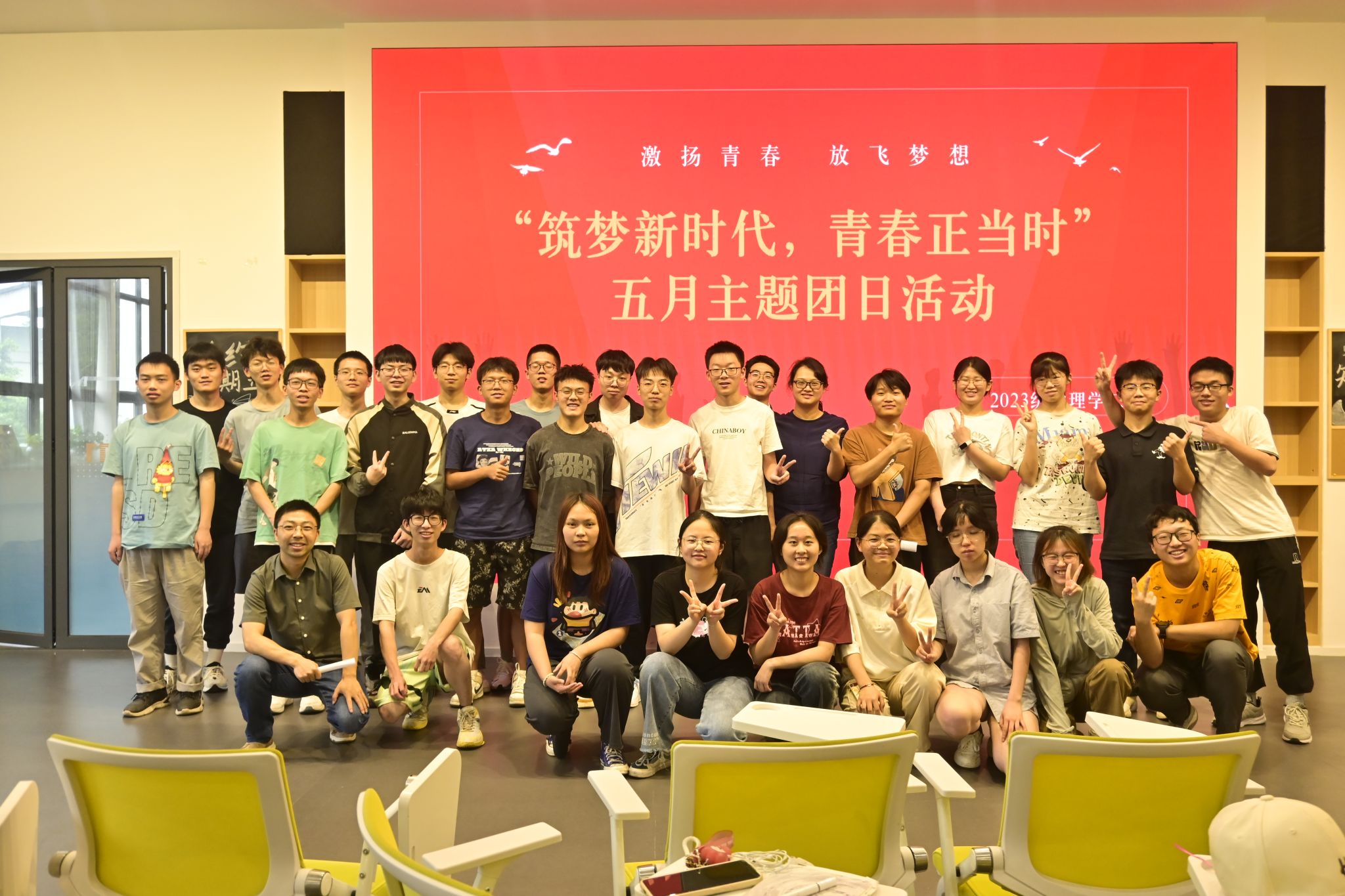 为学习贯彻习近平新时代中国特色社会主义思想,学习和传承五四精神,激励青年大学生厚植家国情怀,彰显时代担当, 2024年5月17日,2023级物理学二班团支部在青李空间A11活动室举办了“筑梦新时代,青春正当时”主题团日活动。a片无码 党委副书记、纪委书记娄霞,a片无码 团委书记兼2023级辅导员贺颖,2023级物理学二班班主任石文武,2020级吕文龙同学、崔莹同学及2023级物理学二班全体同学参会。