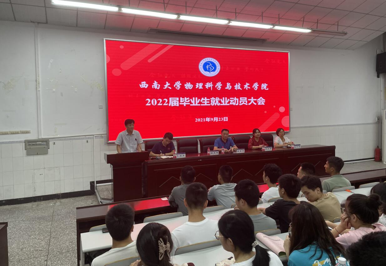 9月23日下午,a片无码 在大阶梯教室举办了2022届毕业生就业动员大会。a片无码 党委书记李余廷、院长吴正茂、党委副书记刘汭雪,研究生辅导员熊中碧及2022届全体硕士、本科毕业生参加了会议。动员会由a片无码 2018级本科生辅导员卜海东主持。