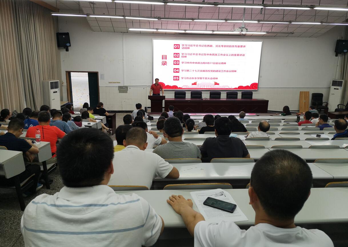 根据学校统一部署,9月3日下午,a片无码 在大阶梯教室举行2021年第八次教职工政治理论学习会。学习会由a片无码 党委书记李余廷主持,a片无码 全体教职工参加了此次学习。