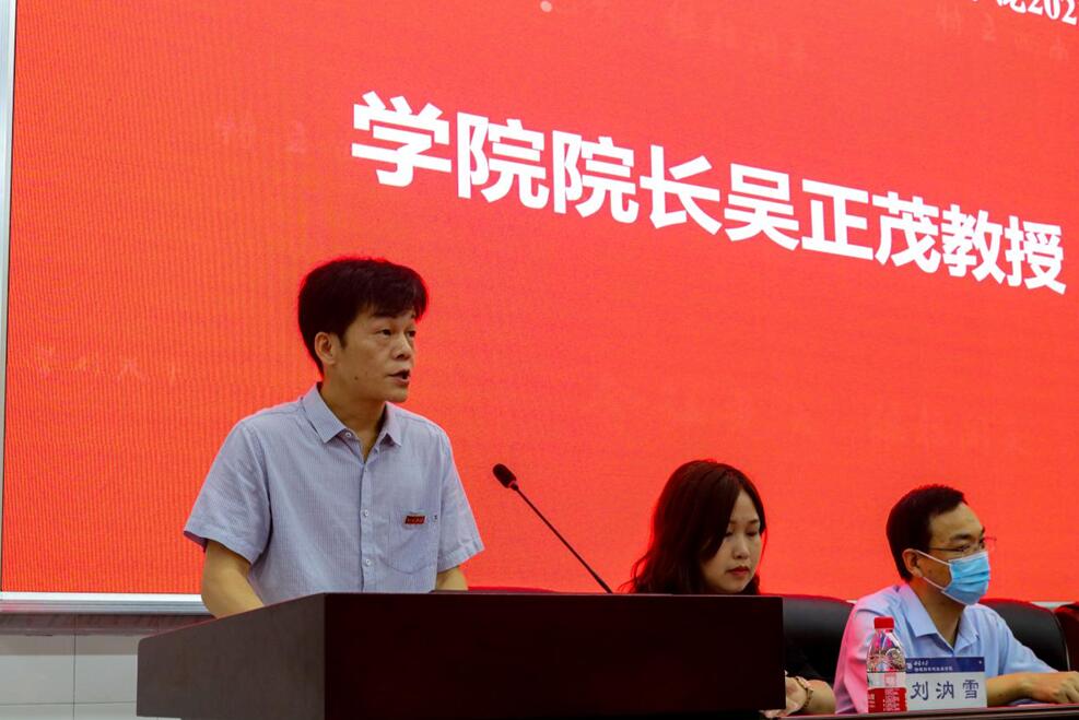 在庄严的国歌声中,见面会正式拉开了序幕。院长吴正茂教授首先致辞,他代表全院师生员工向新生们表示热烈的欢迎和衷心的祝贺。吴院长从办学历史、师资队伍、教学条件、科研成果等方面介绍了a片无码 的基本情况,并勉励大家用“与祖国同频的爱国心”“跟自己较劲的拼搏心”和“对生活微笑的感恩心”开启寻梦、追梦、圆梦的新征途,祝愿同学们成长成为心怀感恩、积极奉献、有情怀、有担当的时代青年。