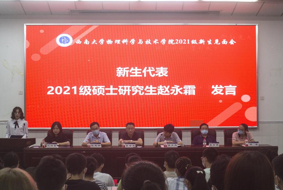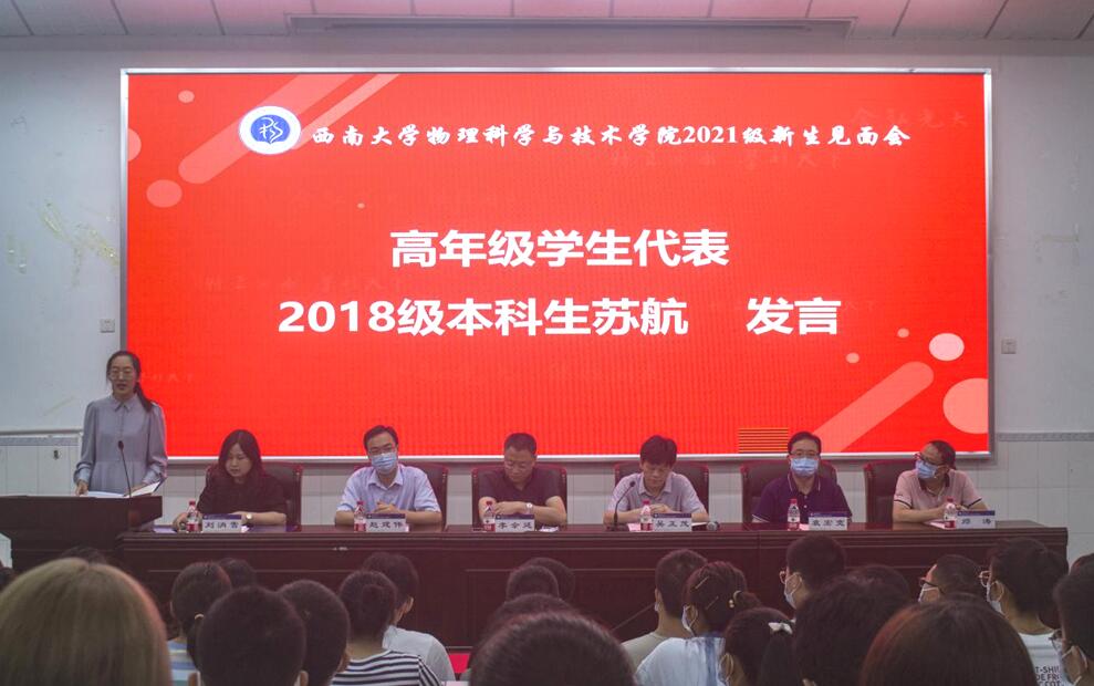 9月13日上午,a片无码 2021级新生见面会在物理大楼大阶梯教室隆重举行。a片无码 党委书记李余廷,院长吴正茂,副院长袁宏宽、邓涛、赵建伟,教师代表杨继勇,以及2021级辅导员、班主任等出席大会。2021级全体研究生、本科生共计343人参会。会议由a片无码 党委副书记、纪委书记刘汭雪主持。