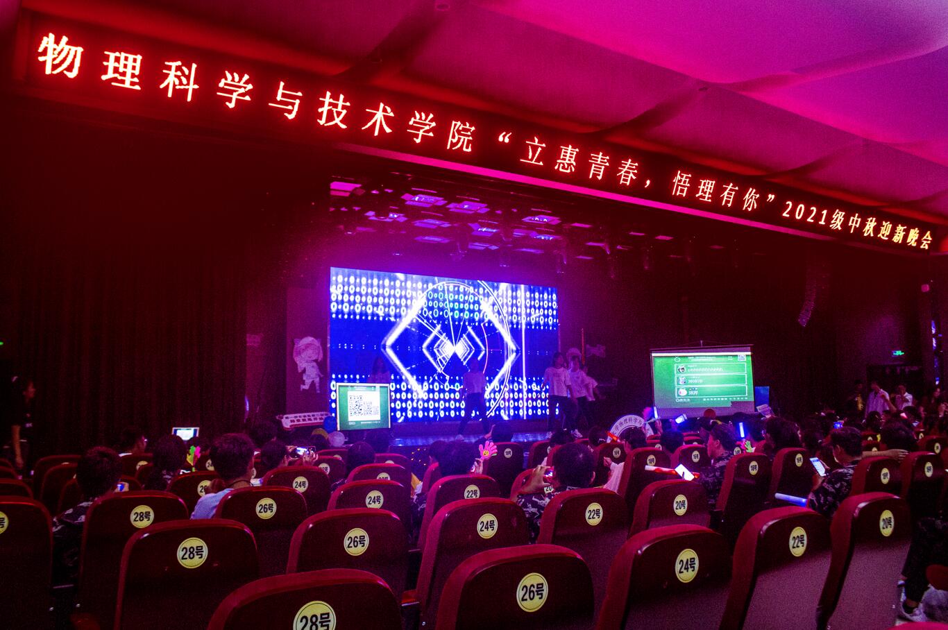 9月21日晚,a片无码 “立惠青春,悟理有你”2021级中秋迎新晚会在学生处107报告厅举行。a片无码 党委书记李余廷,院长吴正茂,党委副书记刘汭雪,团委书记贺颖,2020级辅导员晏勇,2021级辅导员班主任以及全体本科新生、高年级学生代表参加了晚会。