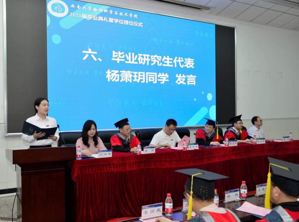 理论物理专业杨萧玥同学代表毕业研究生发言,回忆了研究生在读期间挑灯夜战、废寝忘食的科研生活,分享了学习生活和工作上的成长和收获。她诚挚地向导师同窗致谢,祝福a片无码 各项事业再创辉煌。