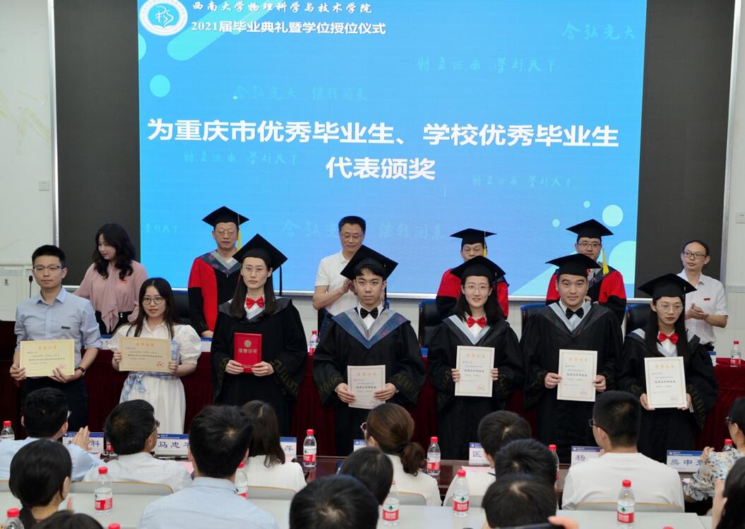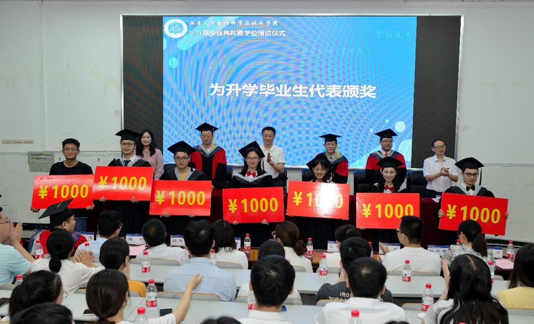 授位结束后,李余廷书记宣读了市级、校级2021届优秀毕业生、优秀毕业论文、升学毕业生等获奖名单。主席台上的领导老师为受表彰的学生代表颁奖。继续深造的同学还获得a片无码 人均1千元的奖励。