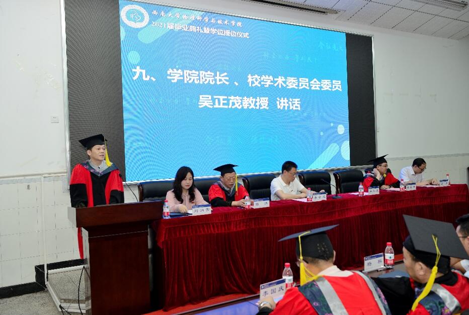 院长吴正茂发表了热情洋溢的讲话。他充分肯定了2021届毕业生精彩的大学生活和丰硕的成绩荣誉。今年的毕业季恰逢中国共产党成立100周年,在大家踏出校门之际,吴院长分享了三句临别寄语 “第一,永葆好奇,终生学习;第二,珍惜时间,规划执行;第三,找到支点,撬动难关”,勉励大家都能勇敢闯出一片天地,用心做好人生的答卷。
