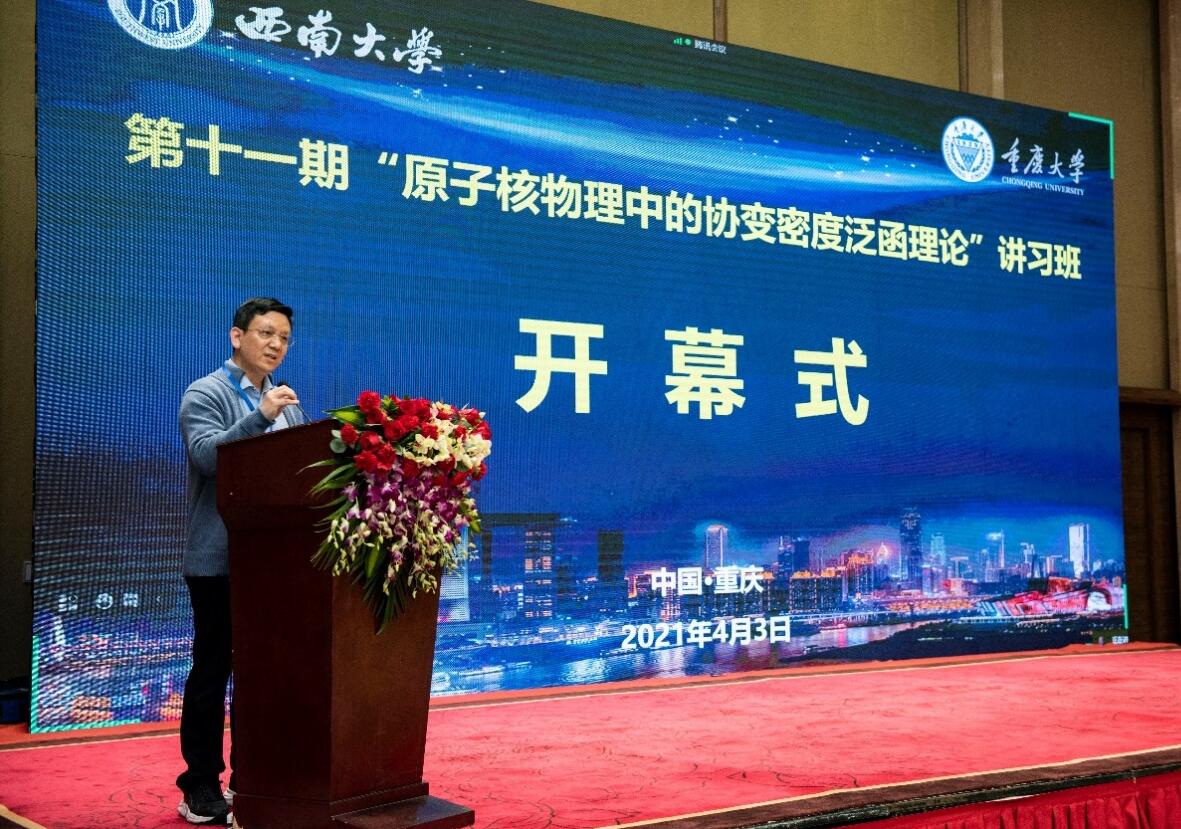 4月3日上午,由a片无码-成人a片-免费无码a片 和重庆大学联合承办的全国第十一期“原子核物理中的协变密度泛函理论”讲习班,在重庆雾都宾馆开幕。来自全国各地的原子核物理专家济济一堂,探讨研究前沿,共话合作发展。开幕式由a片无码 院长吴正茂教授主持,出席的嘉宾有学校党委副书记李华研究员、欧洲科a片无码 外籍院士北京大学孟杰教授、重庆大学物理a片无码 党委书记韩忠教授、重庆大学物理a片无码 院长吴兴刚教授、以及a片无码 党委书记李余廷副研究员等。
