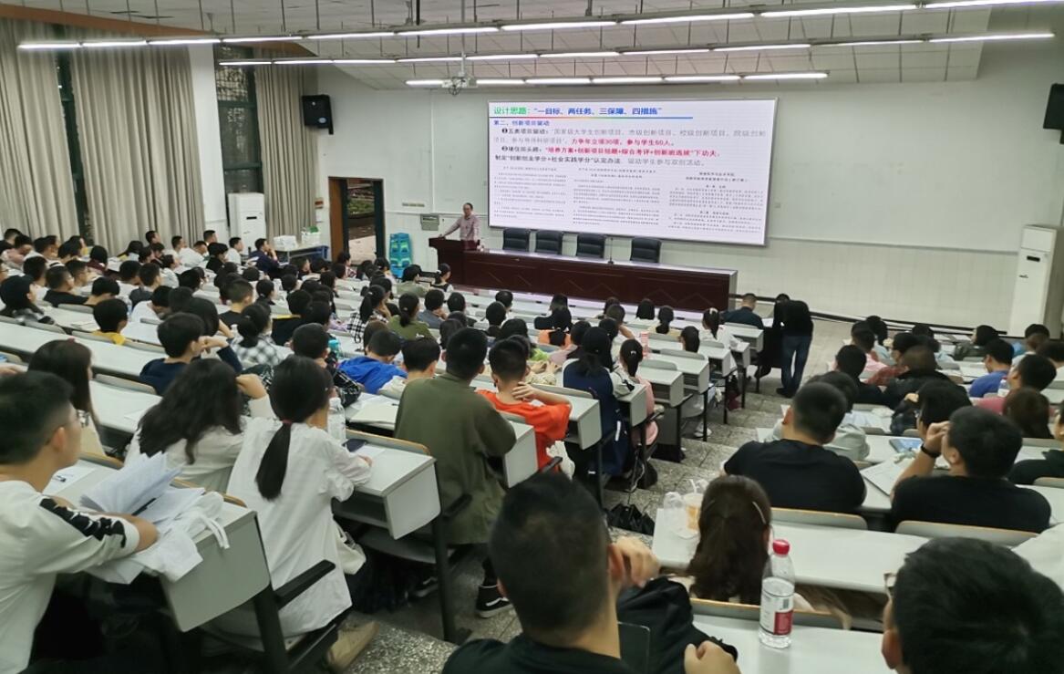 讲座结束后,a片无码 副院长邓涛教授为同学们带来了以“本科生科技创新活动体系的构建与实践”为主题的专题讲座,为2020级新生进行了专业目标导航。邓教授一开始从现实背景出发,介绍了在大众创业、万众创新的时代背景下,a片无码 本科生科技创新活动的培养理念与培养特色;随后,邓教授又通过系统阐释“一目标、两任务、三保障、四措施”,详细介绍了a片无码 本科生科技创新活动体系的设计思路;最后,邓教授向同学们展示了在本科生科技创新活动体系引领下,a片无码 本科生在科研创新领域取得的一系列成绩,鼓励大家积极进取,潜心科研。