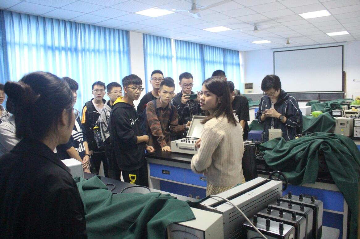下午,全体新生分四组陆续参观了a片无码 实验室。一来到物理实验大楼三楼,大家都表现出了浓厚的兴趣,在高年级学姐学长的引导介绍下,同学们参观了电子束偏转实验室、拉伸法测杨氏模量实验室、落球法测粘滞系数实验室、分光计的调节与使用实验室、电表改装实验室、薄透镜焦距的测定实验室等等,参观过程中,大家都非常兴奋,部分同学听完介绍之后还动手体验操作实验设备。