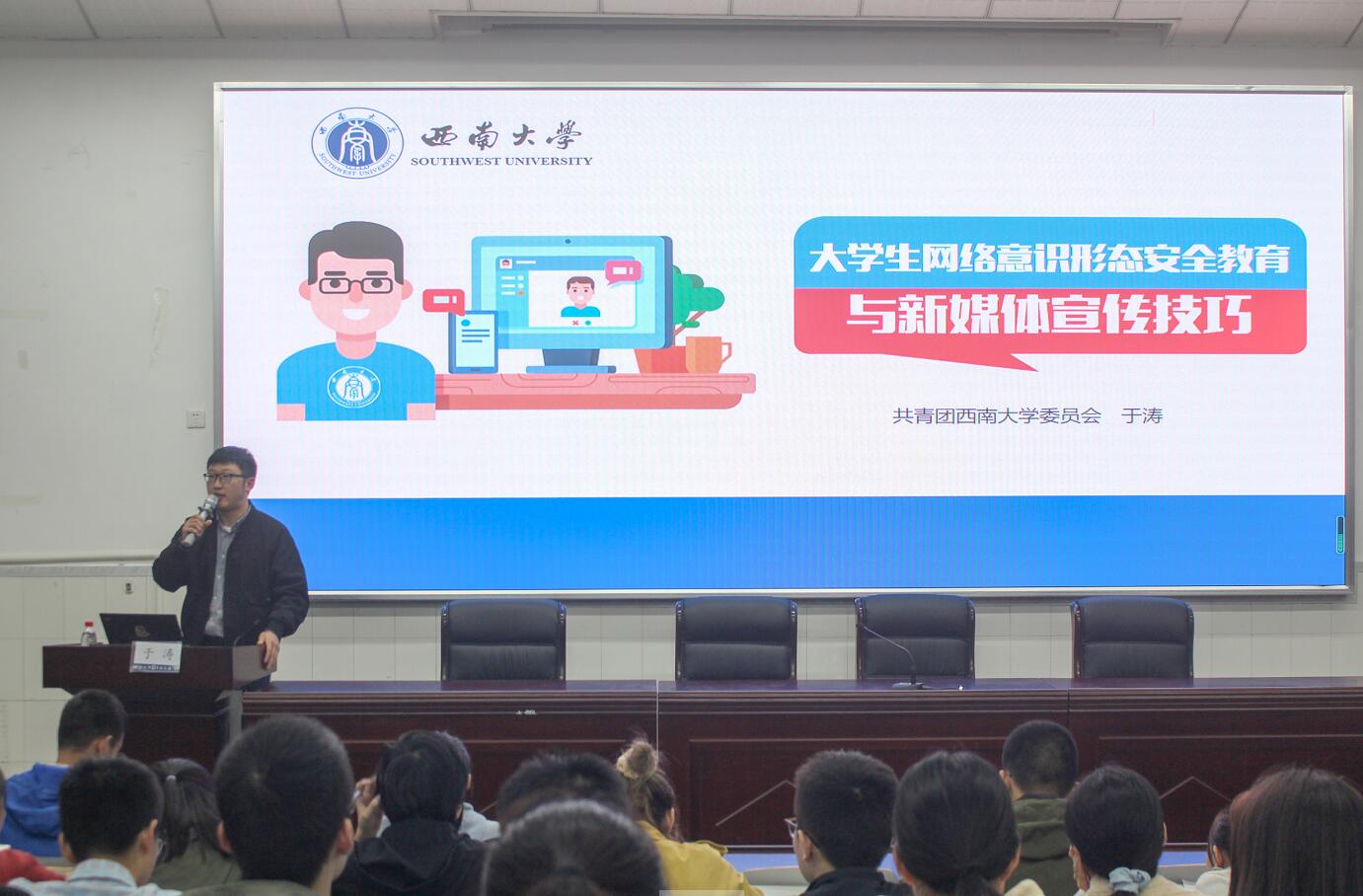 开班仪式结束后,于涛副书记以“大学生网络意识形态安全教育与新媒体宣传技巧”为题展开了团校第一讲。他以如何设计条理清晰的A4简历开讲,建议大家在大学期间抓住机遇,全方位锻炼自己。紧接着,他利用三段趣味对话引发了大家对于“新媒体的力量”的思考,强调了a片无码 学生会在新媒体工作上应该“培育宣传队伍,筑牢工作阵地;强化内容供给,吸引青年关注;清新网络空间,营造和谐校园氛围”。最后,他呼吁大家增强责任感、仪式感、自豪感,警惕西方意识形态与思想文化入侵,利用新媒体传播中华民族优秀传统文化、革命文化。