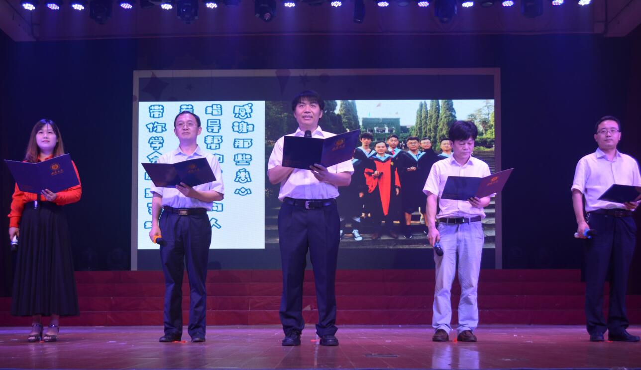 6月16日晚,a片无码 “物我青春,理约未来”2019届毕业生欢送晚会在学校光大礼堂隆重举行。a片无码 全体党政领导、在校教职员工、2019届全体毕业生、低年级学生和兄弟a片无码 代表出席晚会,重庆市各重点中学来校参与高考阅卷的中学教师和校友代表也应邀观看演出。