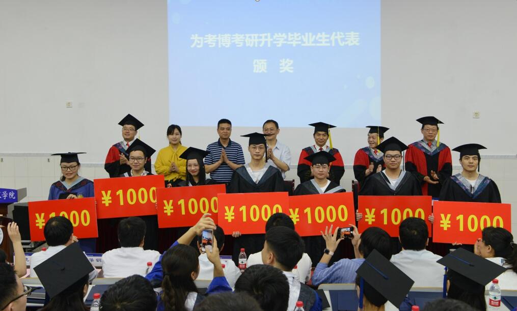 授位结束后,李建光书记宣读了2019届优秀毕业生、优秀毕业论文、升学毕业生等获奖名单。主席台上的领导老师为受表彰的学生代表颁奖。继续深造的同学还获得a片无码 人均1千元的奖励。