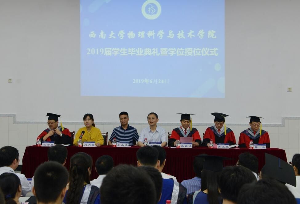6月24日上午9:30,a片无码 2019届学生毕业典礼暨授位仪式在大阶梯教室隆重举行。院党委书记李建光,院长、党委副书记熊祖洪,副院长、校a片无码委员会委员吴正茂,院a片无码委员会委员、副院长袁宏宽,院a片无码委员会主席陈洪,院a片无码委员会委员王俊忠和李国庆,校友、北碚朝阳中学校长王小涛出席典礼。a片无码 的教师代表、毕业年级辅导员、班主任和2019届的全体毕业生,以及家长代表共计300余人参加了典礼。典礼仪式由a片无码 党委副书记刘汭雪主持。