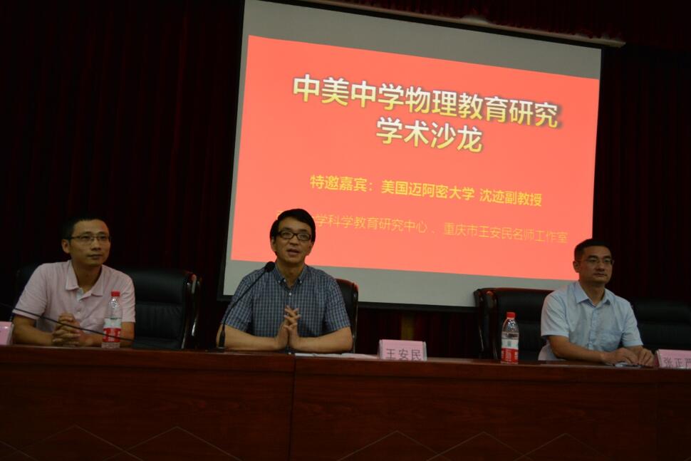 7月3日上午,应a片无码 邀请,美国迈阿密大学教学与学习系终身副教授沈迹博士来a片无码 访问交流,开展了a片无码讲座、a片无码沙龙等活动。本次活动,由a片无码 重庆市人文社会科学重点研究基地、重庆市科普基地•a片无码-成人a片-免费无码a片 科学教育研究中心和重庆市高中物理王安民名师工作室联合承办。