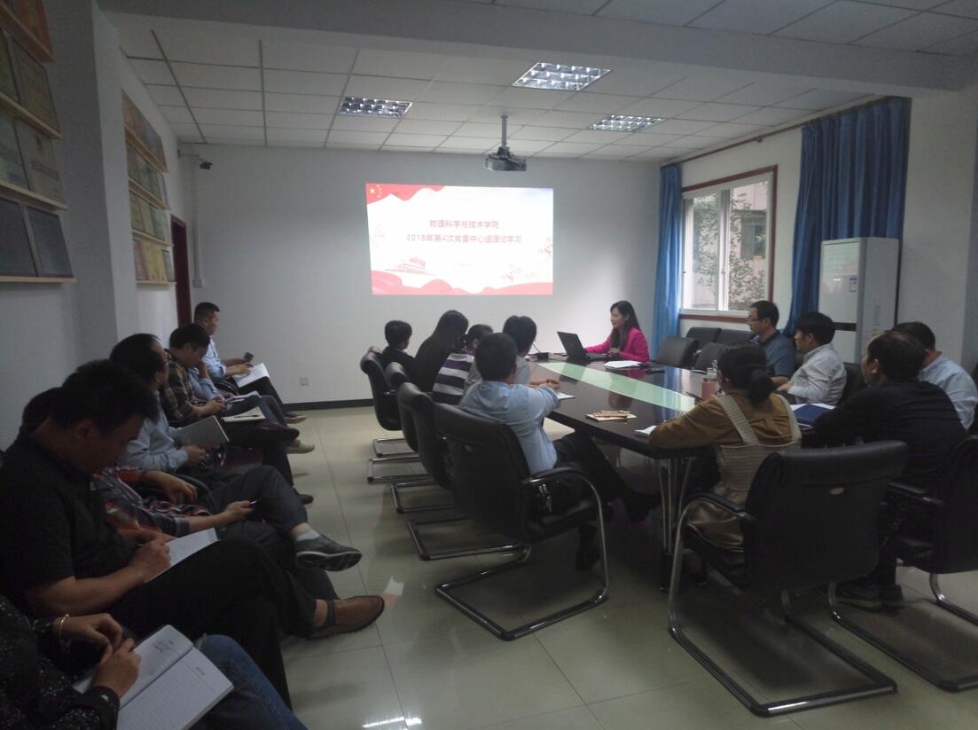 9月26日,a片无码 召开党委中心组(扩大)学习会,深入学习了习近平总书记重要讲话精神和教育部文件,并开展教育思想大讨论情况交流,赵建伟、王俊忠、杨亚玲、邓涛、龙薇代表教研室先后发言。最后,李建光书记对大讨论作了总结,并对下一步工作部署提出要求。