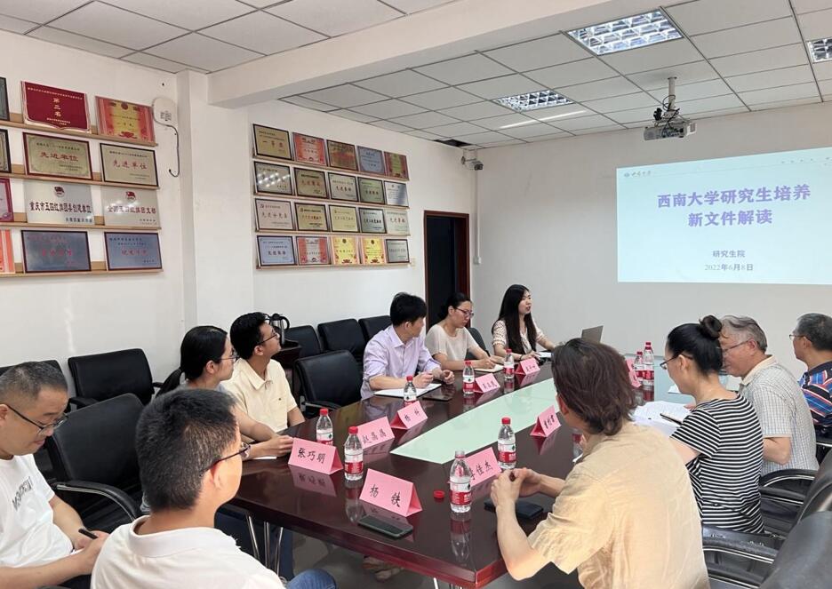 6月8日,学校研究生教育管理与课程教学督导专家组杨国才教授、陈建教授、曾利君教授在研究生院培养办陈璐老师的陪同下,莅临a片无码 开展研究生教育教学管理工作督导检查并开展座谈。a片无码 吴正茂院长、二级学科秘书、新增导师代表以及研究生教学管理人员参加了座谈。