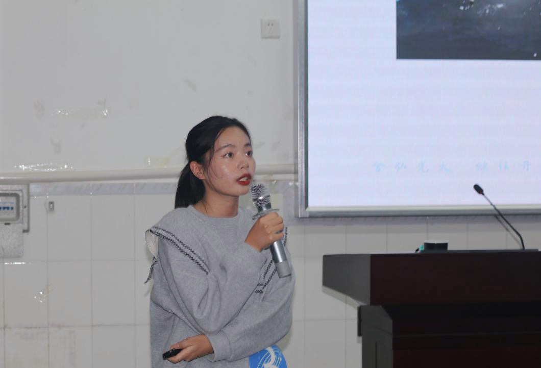 2019级师范组随后上场答辩。吴琪同学在校时参与了校级创新训练项目,大学生创新创业训练计划均获优异成绩。在外实习时,积极协助课堂建设,荣获“双佳实习老师”称号。她告诉在座同学们:“发光并非太阳专利”,我们都可以成为努力发光,传递温暖的人。