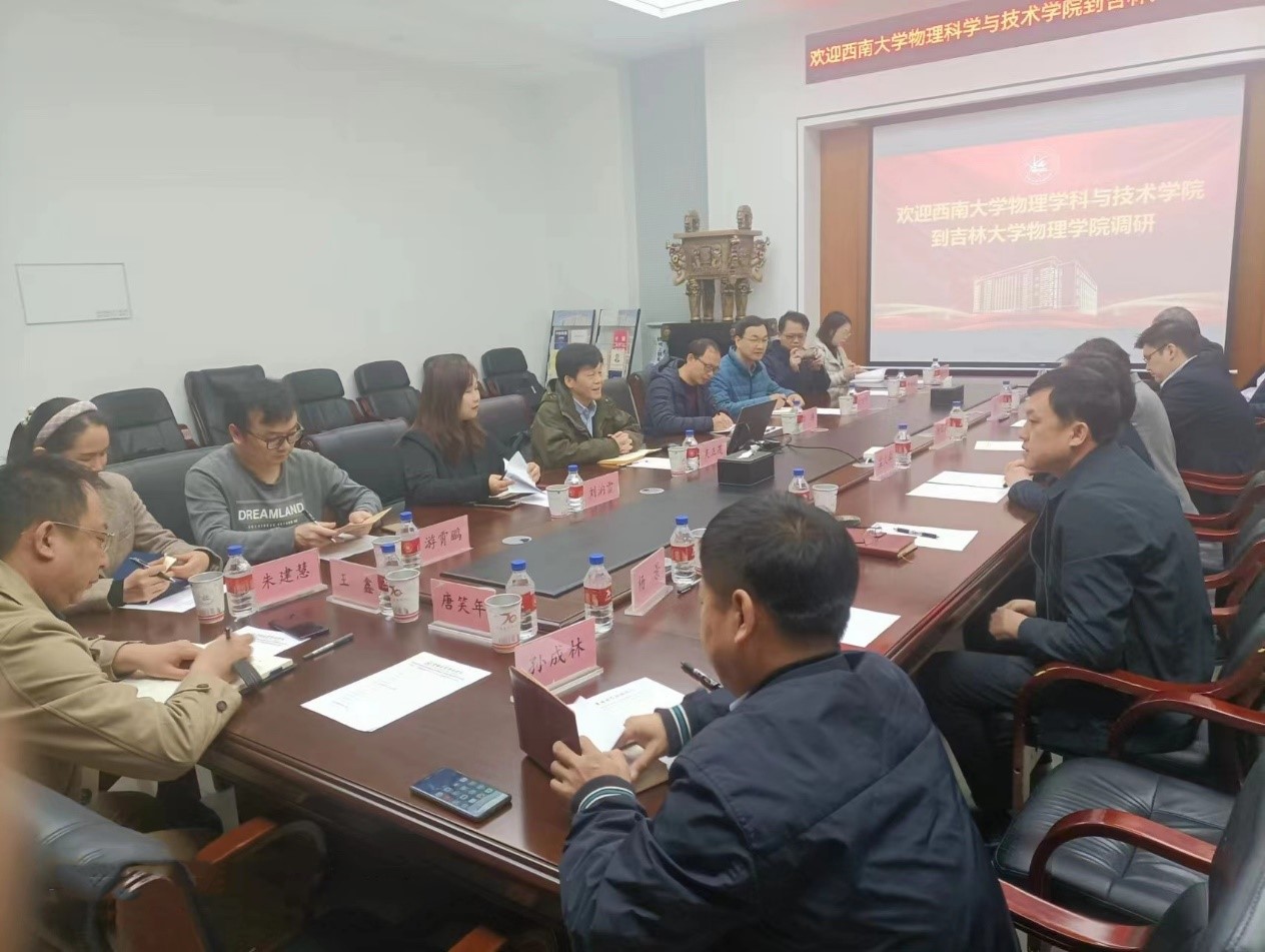 为深入落实党中央关于在全党大兴调查研究工作部署,学习兄弟院校物理学科发展的成功经验,扎实推进a片无码 “十四五”各项工作顺利进行,切实推动a片无码 事业高质量发展,4月20-22日,a片无码 院长吴正茂,副书记刘汭雪,副院长邓涛、赵建伟,教研室主任游霄鹏、贾伟尧、朱建慧,办公室主任刘平萍等一行8人前往吉林大学物理a片无码 和东北师范大学物理a片无码 学习调研。