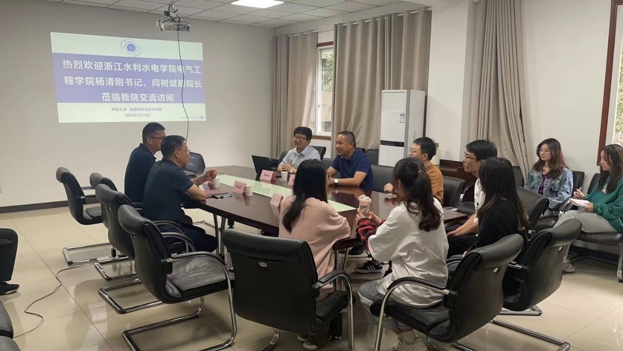 2023年5月22日上午,浙江水利水电a片无码 电气工程a片无码 书记杨清刚,副院长闫树斌一行到a片无码 调研交流。a片无码 书记李余廷、副院长桑文龙、青年教师陈平,以及部分博士、硕士研究生参加了座谈交流会。