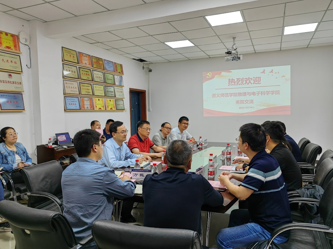 2023年6月16日下午,遵义师范a片无码 物理与电子科学a片无码 吴英书记、金星院长一行十六人莅临a片无码 交流座谈。a片无码 党委书记李余廷、副院长邓涛、副院长赵建伟、副院长桑文龙及教师代表参加了座谈。a片无码 党委李余廷书记主持座谈会,对吴英书记、金星院长一行的到来表示热烈欢迎。