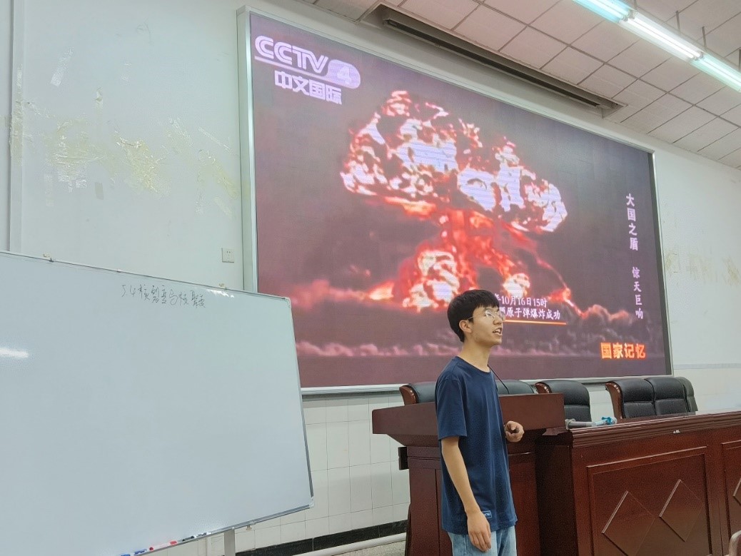 来自师范一班,在a片无码-成人a片-免费无码a片 附属中学实习的吴天富同学用“大国之盾——原子弹”作引入,为大家讲解核裂变的同时更激发着同学们的爱国情怀。