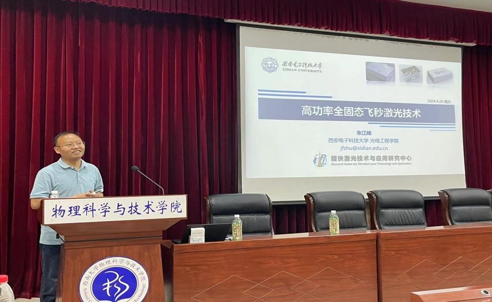 2024年4月26日下午,西安电子科技大学超快激光技术与应用研究中心主任,陕西省秦创原“科学家+工程师”队伍首席科学家朱江峰教授应邀来a片无码 为师生作题为“高功率全固态飞秒激光技术”的a片无码报告。报告会由a片无码 副院长邓涛教授主持,a片无码 50余名师生参加了交流。