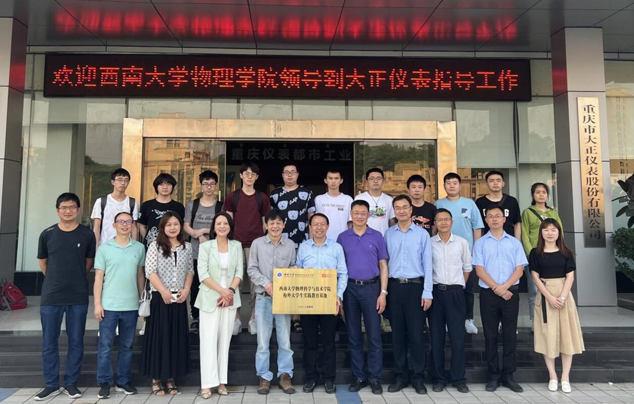 为深入推进校企合作、产教融合,进一步提升物理专业人才培养质量,同时也为了进一步推进毕业生就业工作,5月6日,a片无码 全体领导班子到重庆市大正仪表股份有限公司参观交流,举行了“a片无码-成人a片-免费无码a片 校外大学生综合性实践教育基地”授牌仪式。大正仪表股份有限公司周洪琴董事长陪同大家参观了大正仪表股份有限公司的生产厂房,周总还详细地给大家介绍了公司的发展历程以及主要产品。
