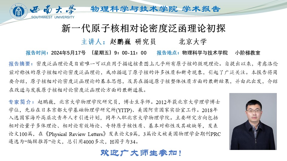 【a片无码报告】新一代原子核相对论密度泛函理论初探