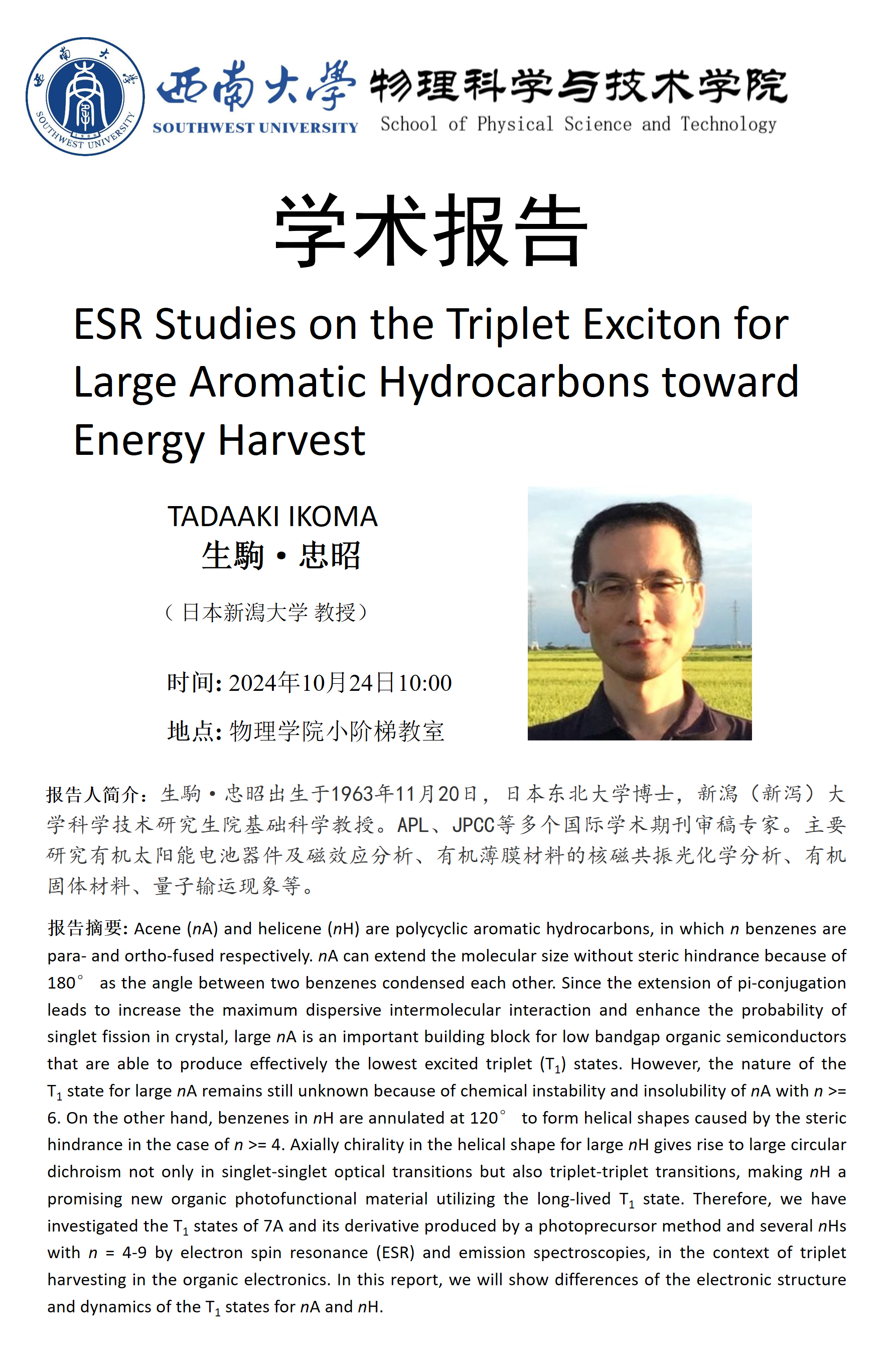 【a片无码报告】ESR Studies on the Triplet Exciton for Large Aromatic Hydrocarbons toward Energy Harvest