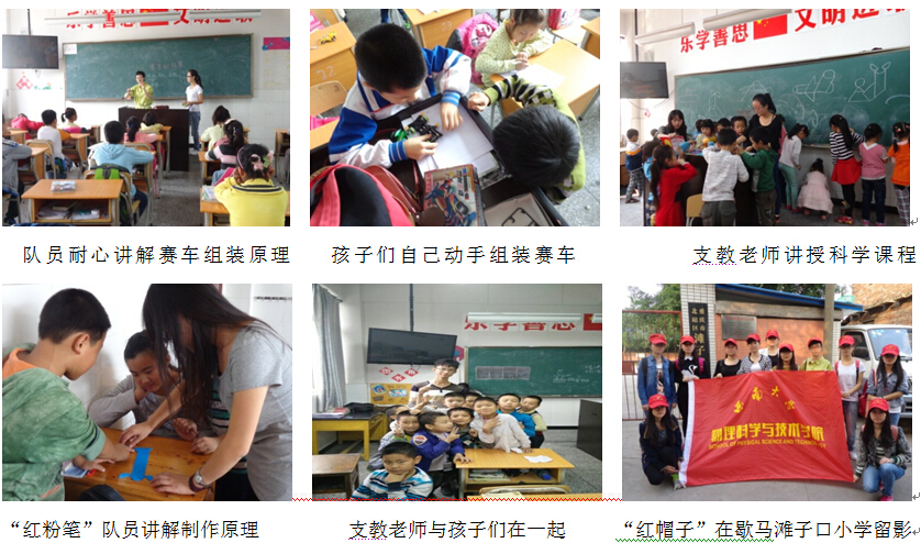2004年起,发挥师范生专业优势,“红帽子”组建了义务支教团,先后在北碚区朝阳小学、歇马滩子口小学建立了支教基地,保证志愿服务定点、定期、定向开展。2015年,新增梅花山小学为第三个结对支教点。