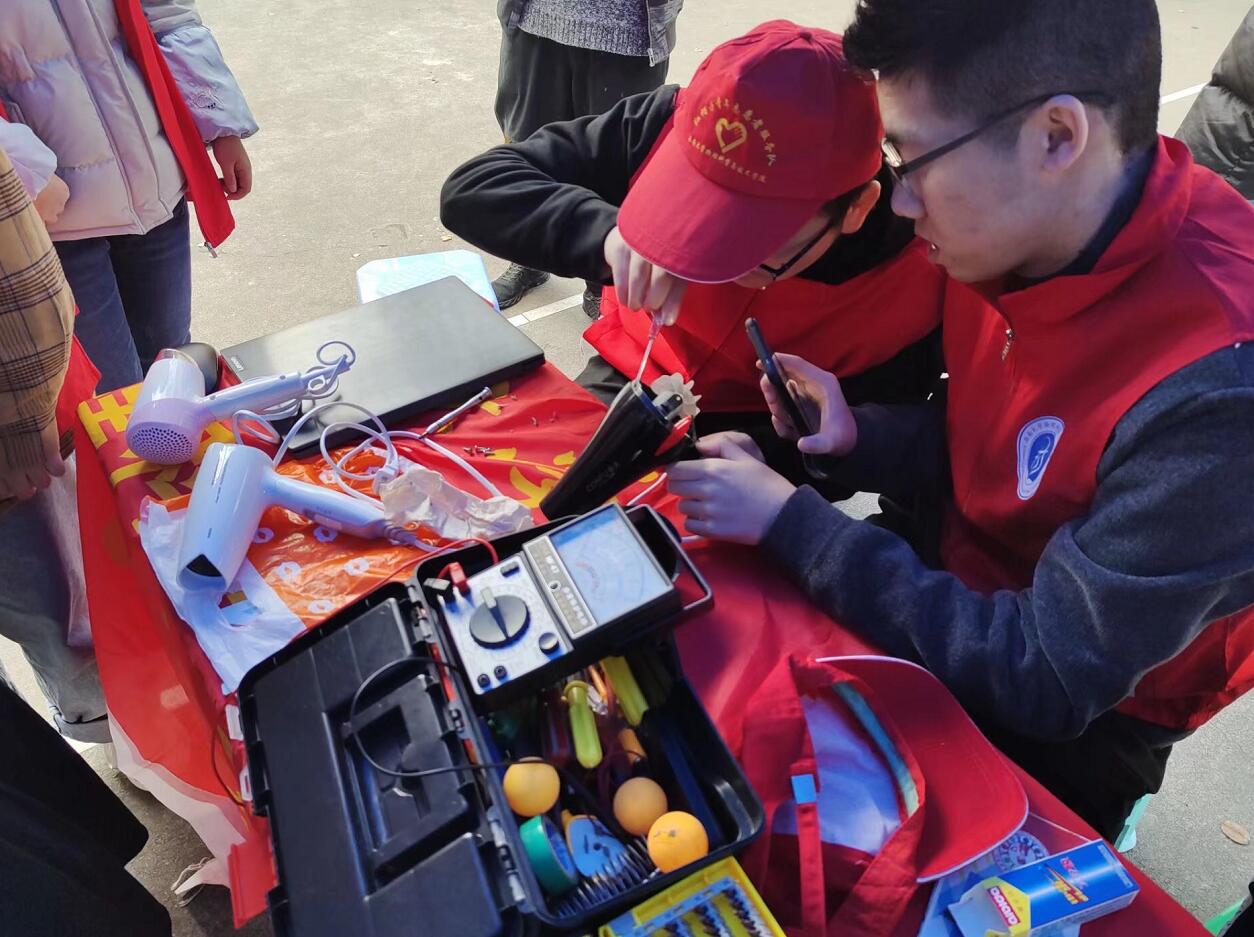 在12·5国际志愿者日当天,“红帽子”青年志愿者服务队在橘园文化广场开展“家电维修进园区”活动。“红帽子”们广泛宣传、热情接待,面向全校师生免费维修家电,活动期间维修了话筒、吹风机、烧水壶及耳机等14件电器。