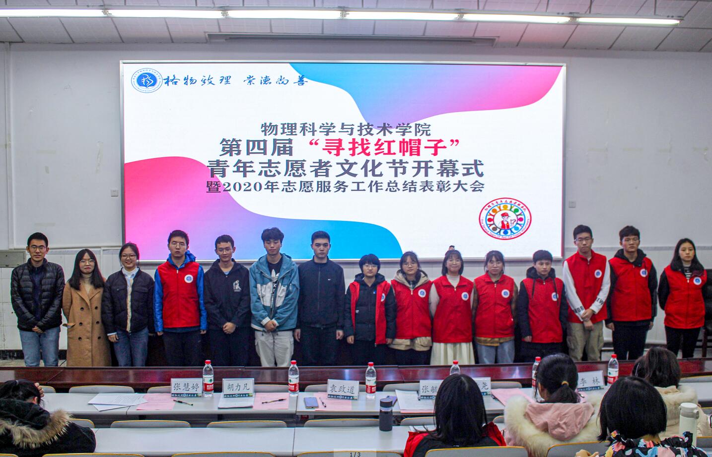 12月4日晚,a片无码 第四届“寻找红帽子”青年志愿者文化节开幕式暨2020年志愿服务工作总结表彰大会在物理大楼大阶梯教室举行。a片无码 学生会主席团成员、“红帽子”青年志愿者服务队队员、科普创作社成员、“红帽子”本科生党员先锋队队员及2020级本科生代表约200人来到了活动现场。