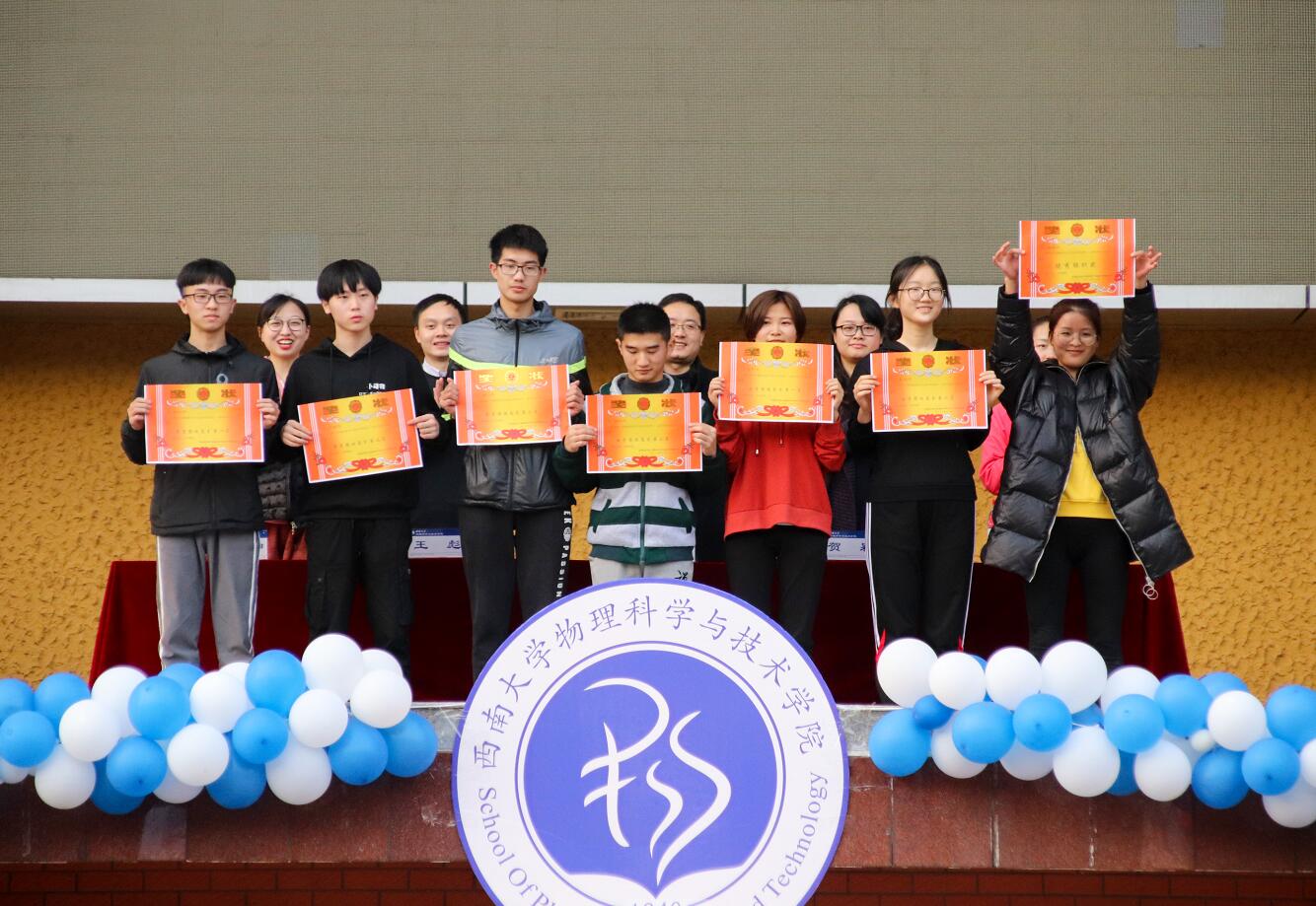 经过两天激烈而有序的比赛,11月25日下午4时30分,运动会举行了闭幕式并进行了颁奖。党政办公室、物理实验中心、基础物理教研室分获教工团体总分前三名,2016级师范2班、2016级师范4班、2017级师范2班分获学生团体总分前三名,2018级师范1班等6个学生班级获得优秀组织奖。此外还评选出了32名体育个人道德风尚奖、30名优秀裁判员。