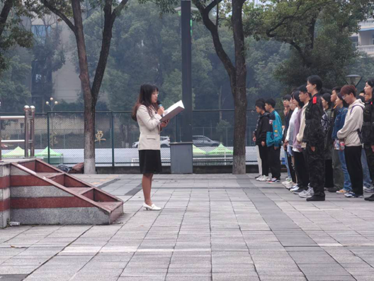 升旗礼毕,院党委副书记、纪委书记娄霞讲话,她强调五星红旗见证了中华民族的苦难与奋斗,全体同学对国旗应怀有最诚挚的敬意和热爱。随后,娄书记指出杭州亚运会的成功举办让世界看到了中国建设的新面貌,青年人应该对中国式现代化充满期待,西大物理人应该在建设科技强国中挺膺担当,她勉励大家做到“崇德尚善,坚定信念;格物致理,勤奋学习;全面发展,健康成长”。最后,娄书记指出今天恰逢重阳节,希望同学们能够弘扬尊老敬老的美好品德,传承优秀传统文化。