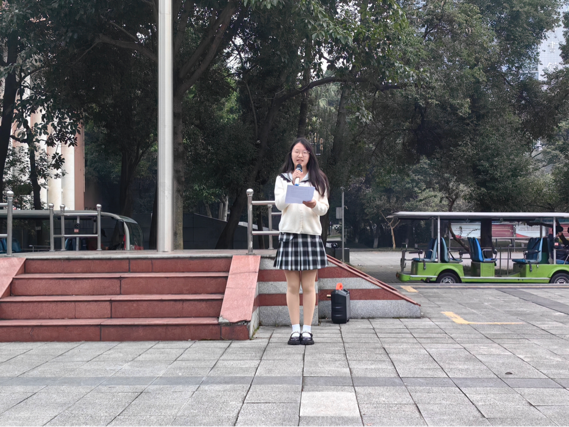 接着,学生代表2023级师范5班的方佳同学发言,她表示青年大学生应当把个人夺冠的小目标紧紧融入党和国家事业的大蓝图中,将自己对中国梦的追求化作一件件身边事。方佳同学还倡议同学们做到以下三点:正三观、立根基;夯基础、抓素养;重实践、求创新,争做有为新青年。