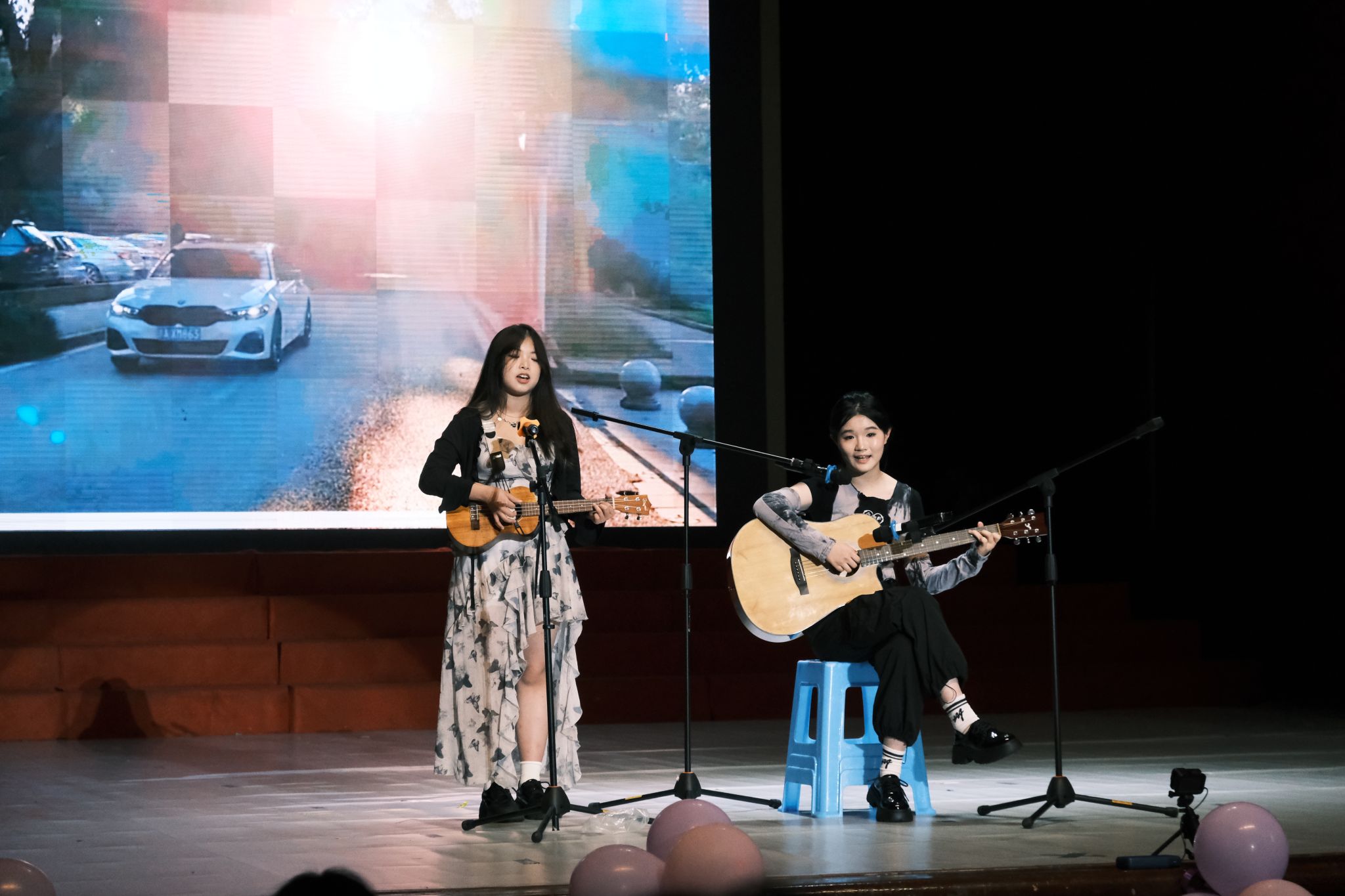 2020级李沛芹、龚禧等带来的歌曲《思念是一种病》用歌声诠释了毕业生离校时“甜苦交织”的思念;研究生热情幽默的《被子舞》则让在场观众抛开愁绪与烦恼,开怀大笑; 2022级郭琪带来的独唱《冬天里的一把火》瞬间点燃全场,引得在场观众频频欢呼。