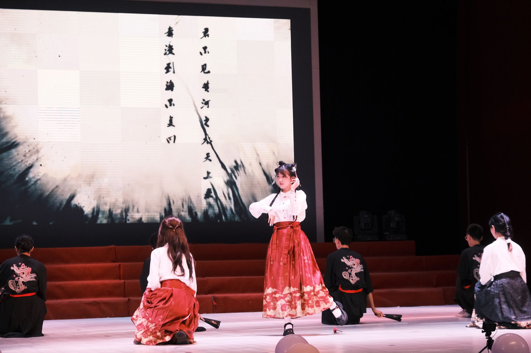 本场晚会由“青春·热烈的诗行”“青春·奋楫的手函”“青春·未来的序章”三个篇章组成,a片无码 师生联袂带来16个精彩纷呈的节目。晚上7点,团委学生会办公室带来的国风舞蹈《将进酒》拉开了演出的序幕。