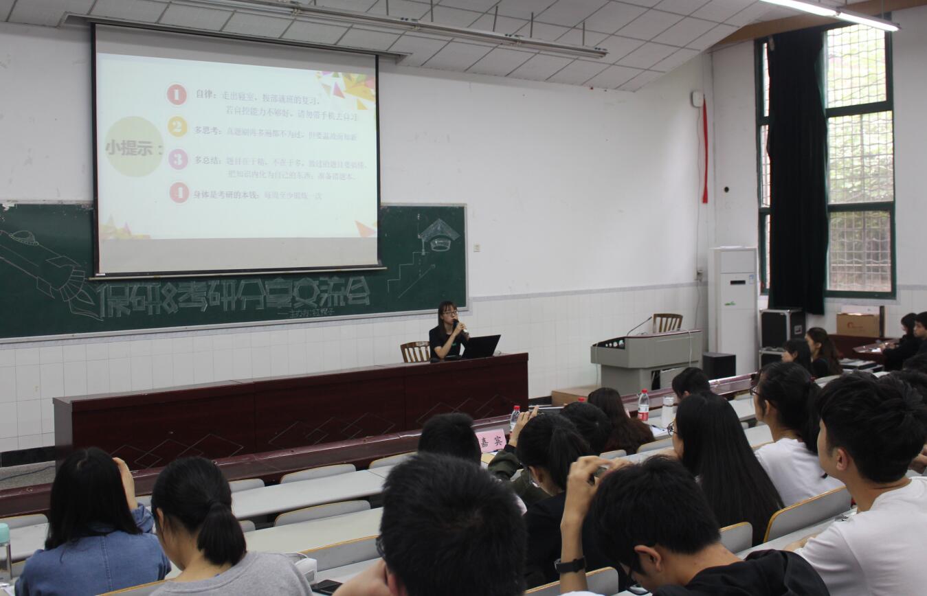 交流会伊始,保送至南京大学的翟文静同学向大家详细介绍了学校关于免试保研的政策以及保研资格的获得、注意事项,并从夏令营申请的准备、保研面试等方面向做了耐心细致的分享。